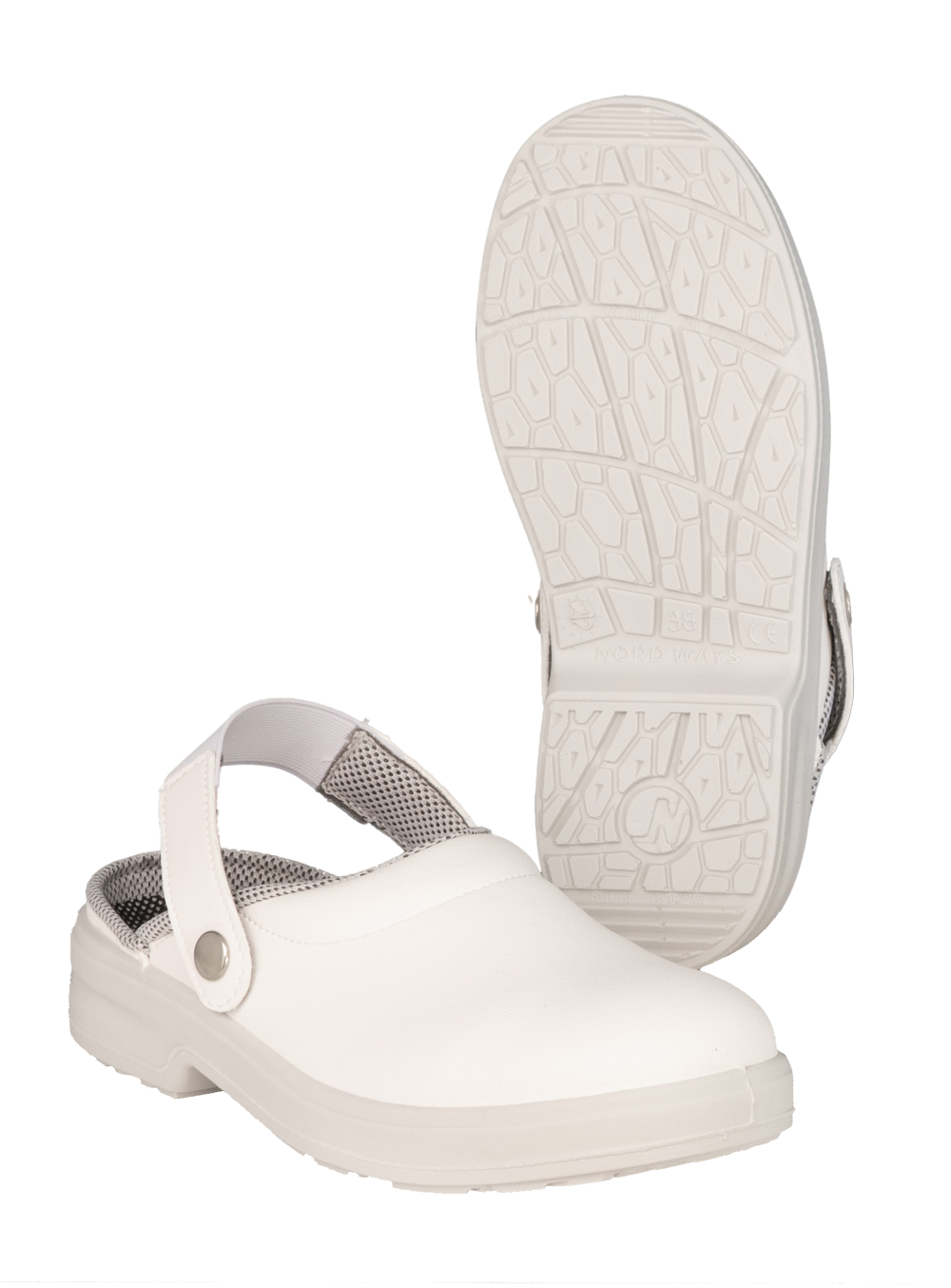 En cuisine, les chaussures doivent disposer d’un embout de sécurité protégeant les orteils. Elles peuvent être de forme sabot avec bride arrière ou de forme fermée (de type mocassin, basket ou botte). Les notions de performances antidérapantes et de résistance à la pénétration de l’eau sont importantes lors des choix.